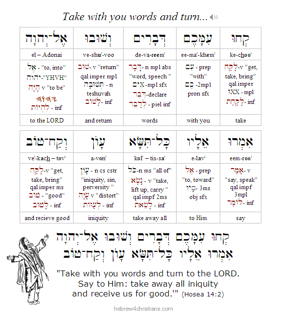 Hebrew Lesson Deuteronomy 26:8a reading (click):