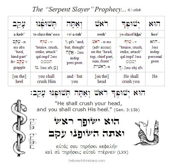 In parashat Toldot we gain further insight into the coming spiritual showdown between the LORD and the serpent (nachash). Recall that the original promise of the coming Messiah was given within the context of the curse and judgment upon Satan: "I will put enmity (אֵיבָה) between you and the woman, and between your seed and her seed; he (i.e., the Savior/Messiah) will crush your head (ראשׁ), and you (i.e., the serpent/Satan) will crush his heel (עָקֵב)" (Gen. 3:15). The very first prophecy of Torah therefore describes the coming of the "Serpent Slayer" and the great conflict of the ages. Since the Messiah would be "born of a woman," the prophecy implies perpetual warfare between those descendants of Eve who shared her faith and underwent teshuvah (called the "children of light" or "children of the promise") and those descendants of Eve who refused it (called the "children of darkness" or "children of the devil"). The ongoing enmity between these "two seeds" foretells the "tale of two kingdoms," the Kingdom of God and the kingdom of the devil (John 8:34-36).